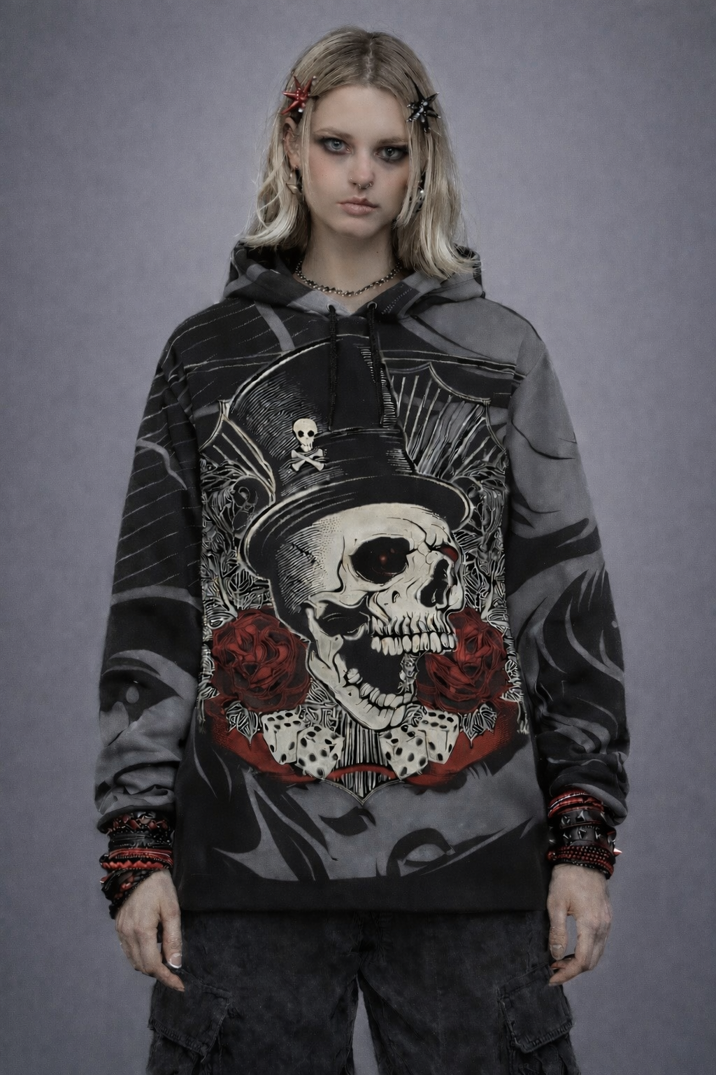 Young Savage Mad Hatter Skull Women's Goth Punk Hoodie