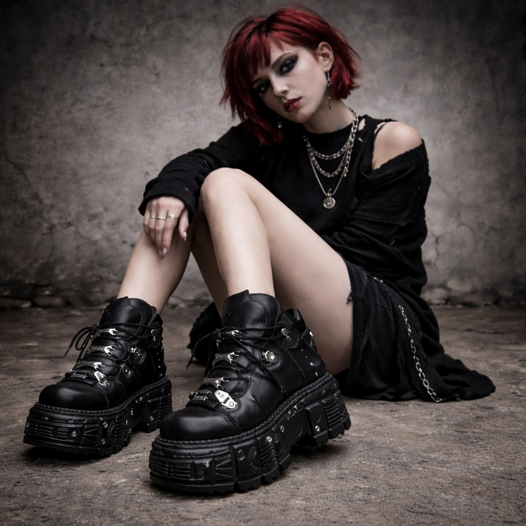 Women Shoes Gothic Punk Style Lace-up Metal Rivets Heel Height 6CM Platform Shoes Ankle Boots